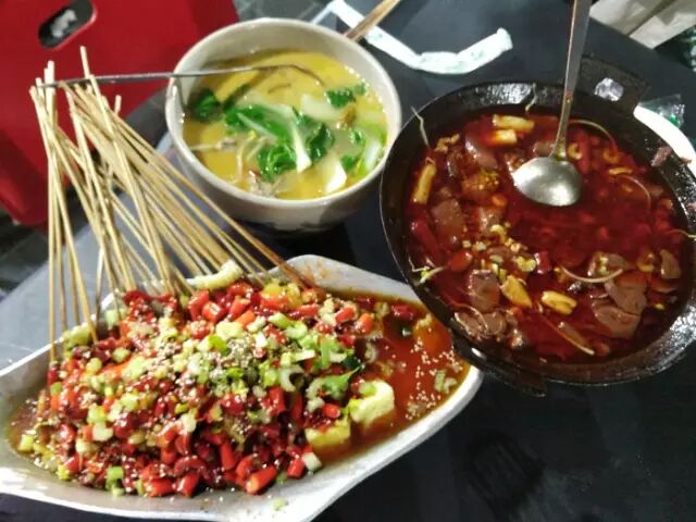 这家火锅串串的油用的很好,很清澈,一次性锅底加上一大瓶农夫山泉当着面给你倒进去,够豪气!而且越到后面越好吃,可能是农夫山泉的清甜让锅底 一点也不苦!