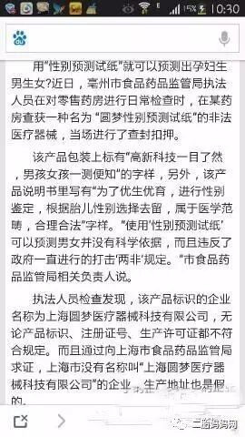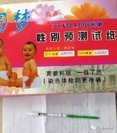 试纸二:网上热卖的各种国内性别试纸,和验孕棒类似,一样是验尿,双杠为男,单杠为女。鼓吹一杯尿液、一条试纸,一分钟时间便可检测出所怀宝宝是男是女。