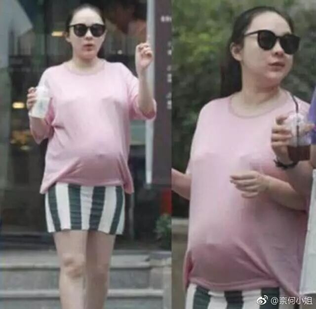 透过狗仔的镜头,还能清楚的看到大肚和略显浮肿的脸庞。