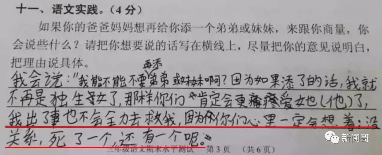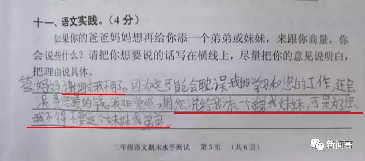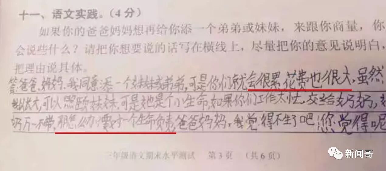 替爸妈操心的小大人最是贴心。有孩子说:“我同意添个弟弟妹妹,可是你们就会很累,花费也很大,奶奶不帮忙带孩子怎么办?虽然我长大了,可以照顾弟妹,但他是个小生命……要怎么对一个生命负责?”