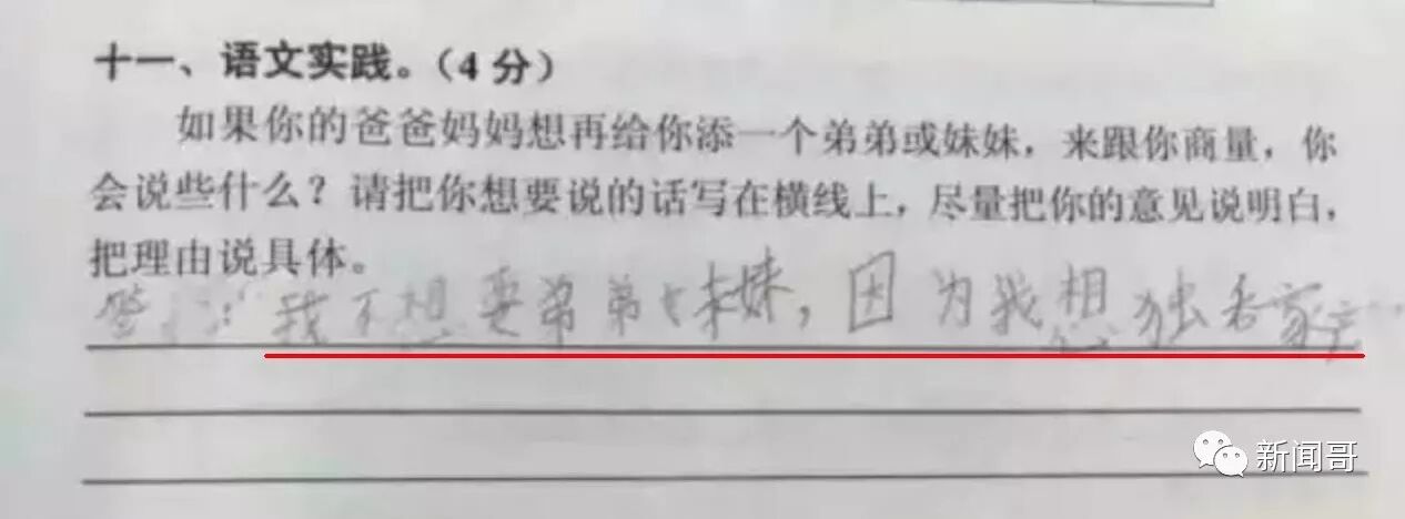 还有帝王做派的,“我不想要弟弟妹妹,因为我想独吞财产。”