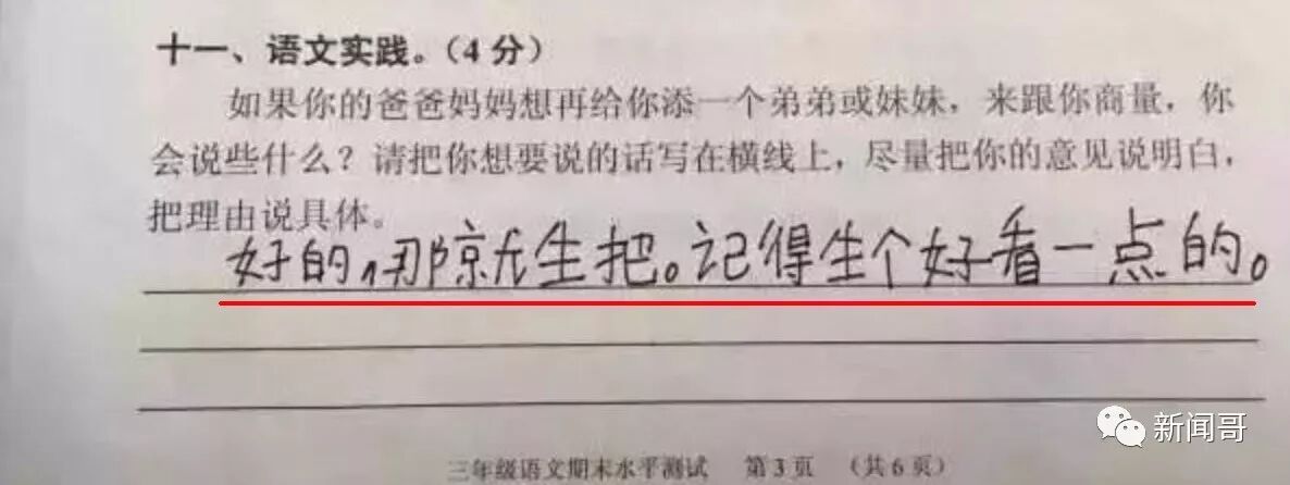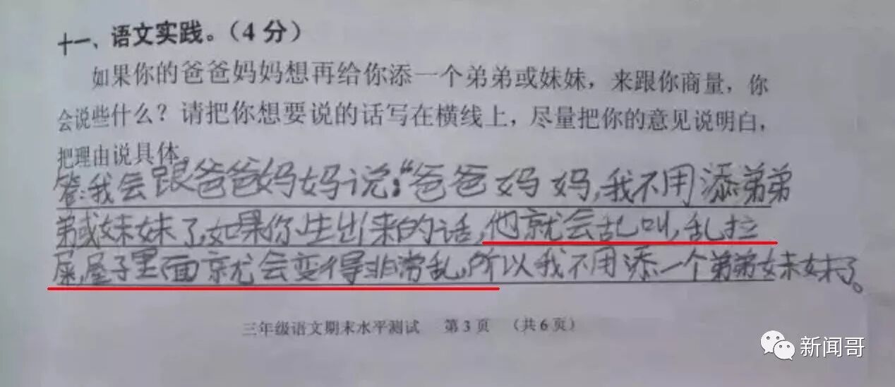 哥以前看过一个段子,少年问爸爸,我都这么大了,你为什么非要生二胎?