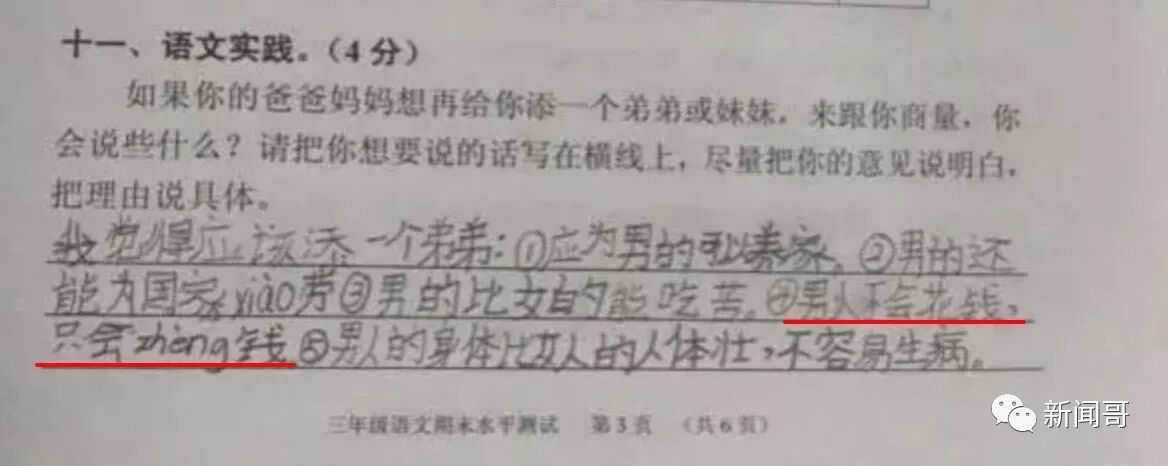 还有人要求只要弟弟,不要妹妹,理由是“男的可以养家……男的不会花钱只会赚钱”