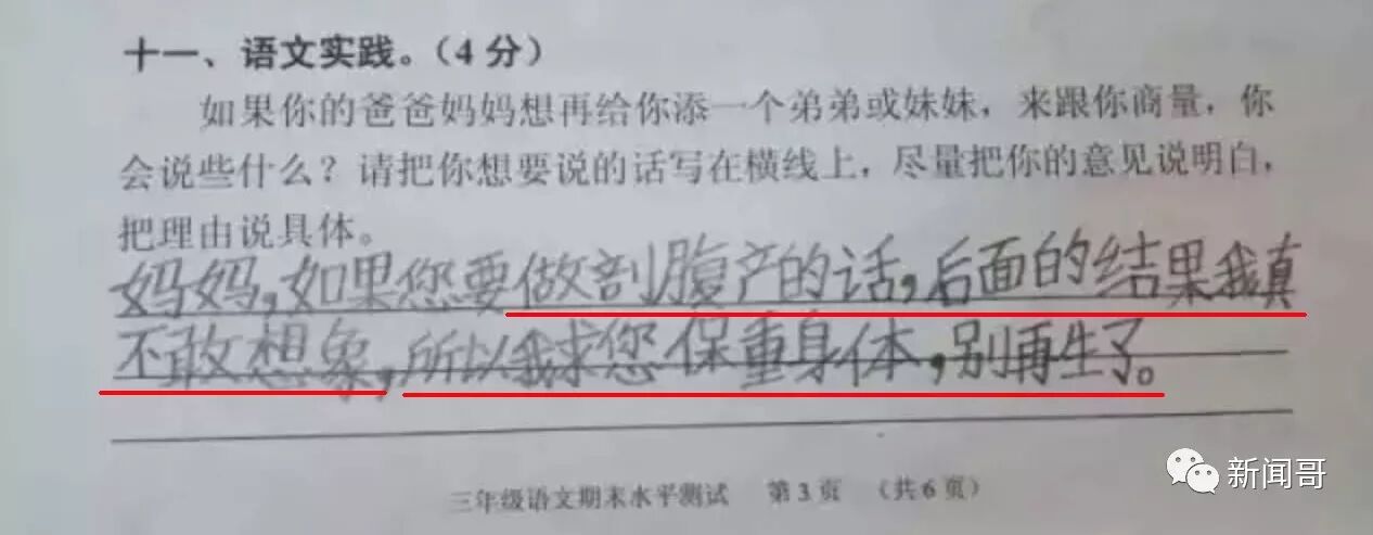 当然,也有暖心的小棉袄,拒绝二胎的理由是怕妈妈剖腹产,身体吃不消。
