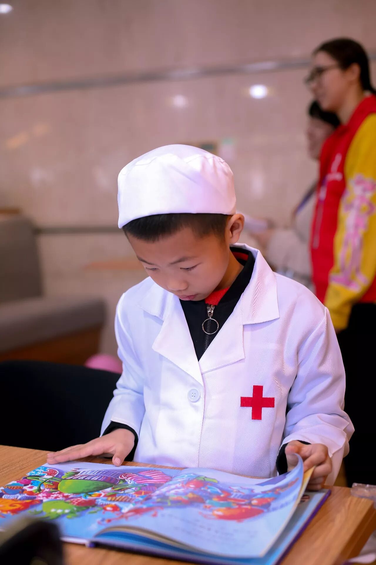 (麻麻穿的一脸认真,“护士姐姐”你有点严肃..笑一个嘛)