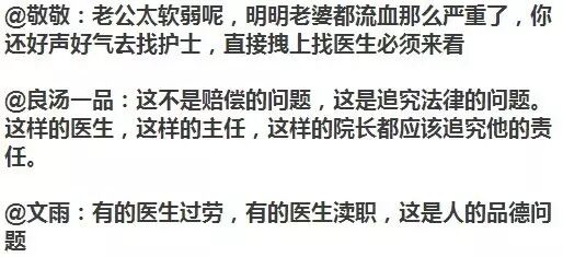 “住院后检查一切正常。当日下午3时39分生下孩子,妻子出产房时还有说有笑。”许先生说,妻子随后被推进待产室观察,不一会儿家人发现产妇出血较多,去问主治医生周大夫,周大夫说属正常现象,过了一会儿血还在流,家人又去问,大夫说让产妇坚强些,不要太娇气。就这样,当许先生带来的两提卫生纸都被鲜血染红时,家属有些慌了,又去找大夫,大夫给开了“宫缩素”。许先生说,出血持续到17时20分左右,大夫才来查看,随后把妻子送进了抢救室。