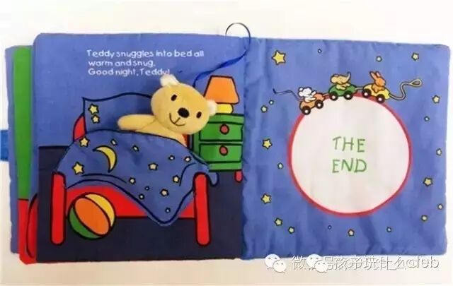 《Good night Teddy》封面是一张大床,可爱的被子里藏了一只泰迪小熊。吃饭、睡觉、刷牙...小熊可以拿下来,放到书本的每一页,作为角色扮演使用。每天晚上,宝宝奶声奶气地和妈妈一起读里面的英文故事,想想就暖心。