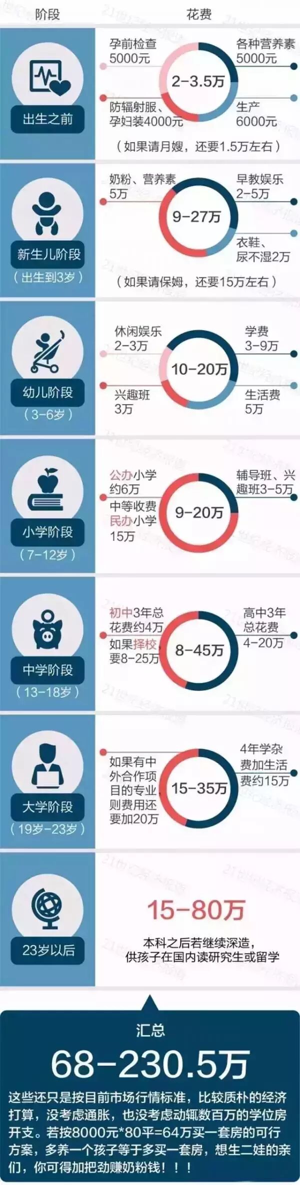 最后结论是,在仙居养大一个小孩总花费约68万元。那么,养大两个小孩呢,一百多万呢~看完以后,小编真是太感谢自己的父母了!然而这只是最最最基本的费用哦!算算你现在的工资,可以养的起几个小孩呢?小编准备蹲墙角哭一下......