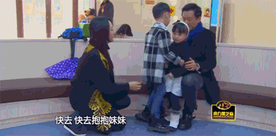 看到妹妹要摔倒了一手护住头,这种贴心的小举动真的家里家教好才有的,小小年纪就有一种绅士的感觉。