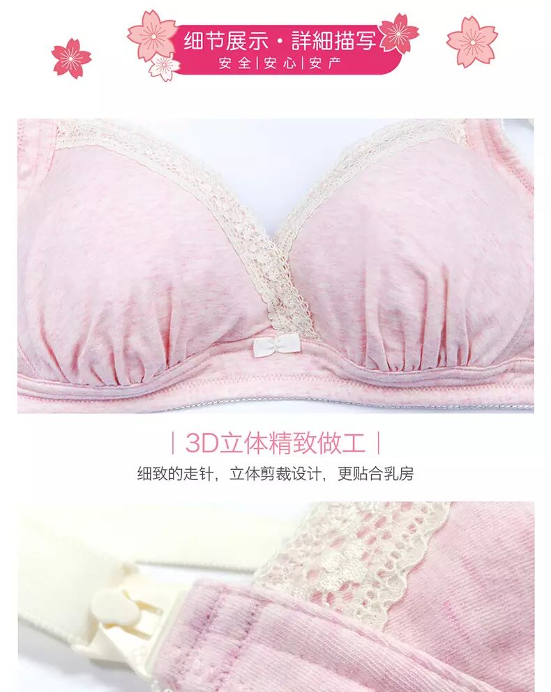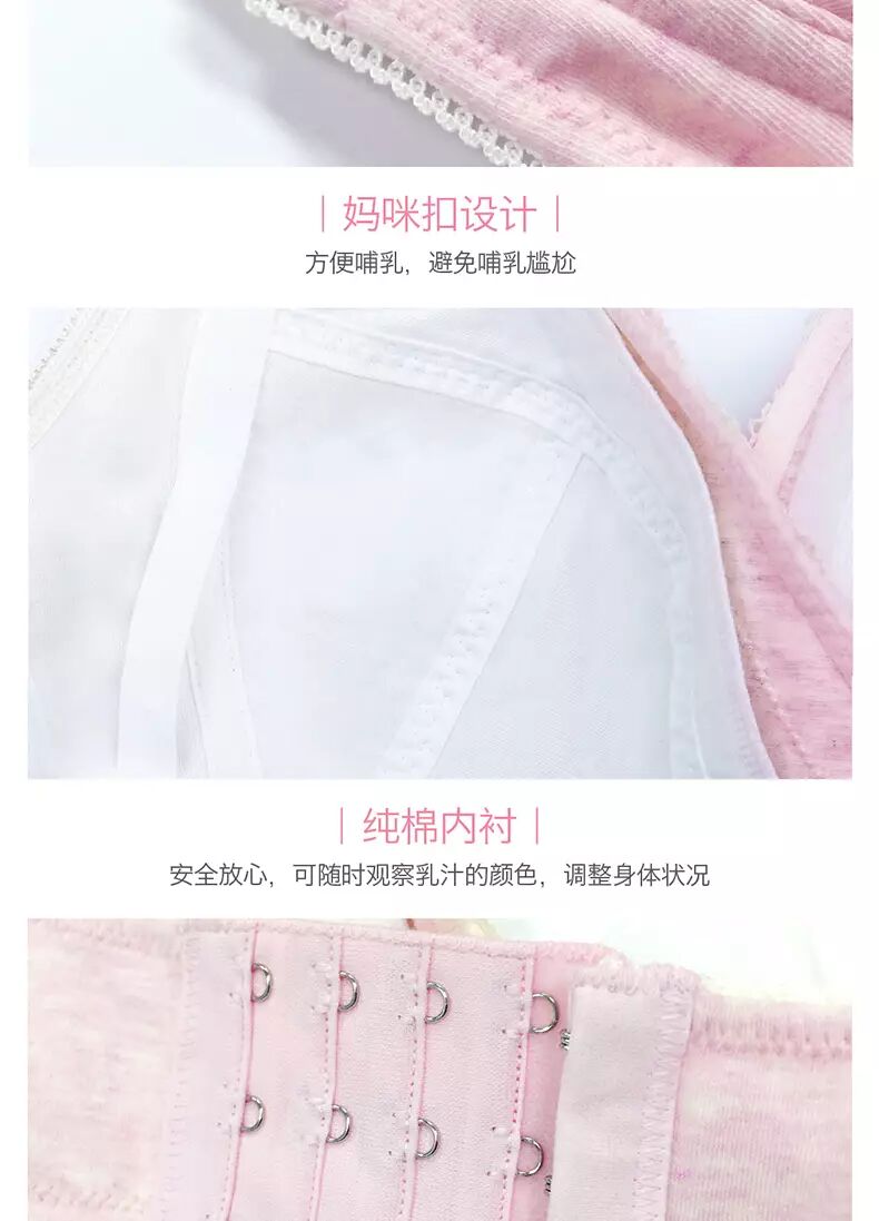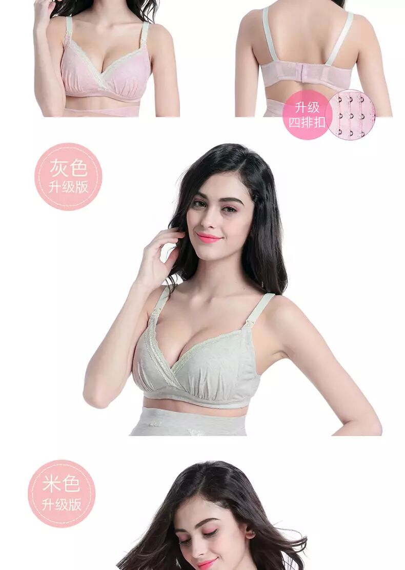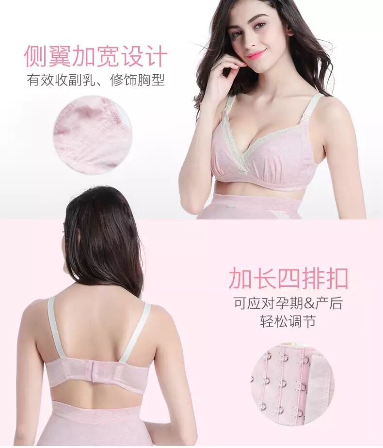 这时,需要及时换成孕妇专用无钢圈、收副乳、贴合人体设计、无压力肩带,能温柔支撑的加强侧翼3D立体裁剪四排扣文胸。最好是舒适聚拢,锁定脂肪,便捷哺乳,防产后下垂的品质材质文胸。