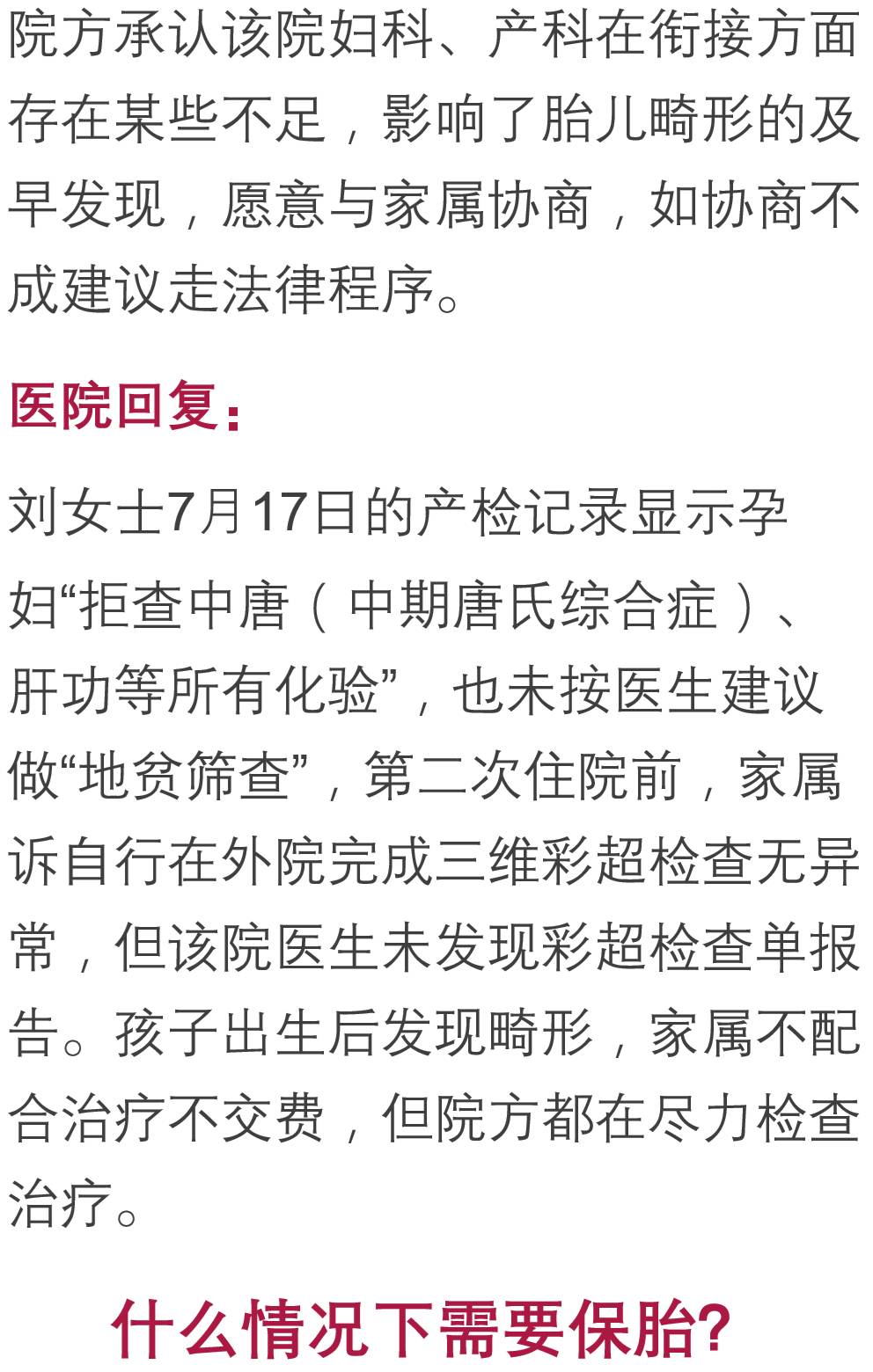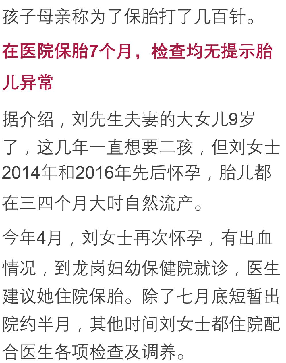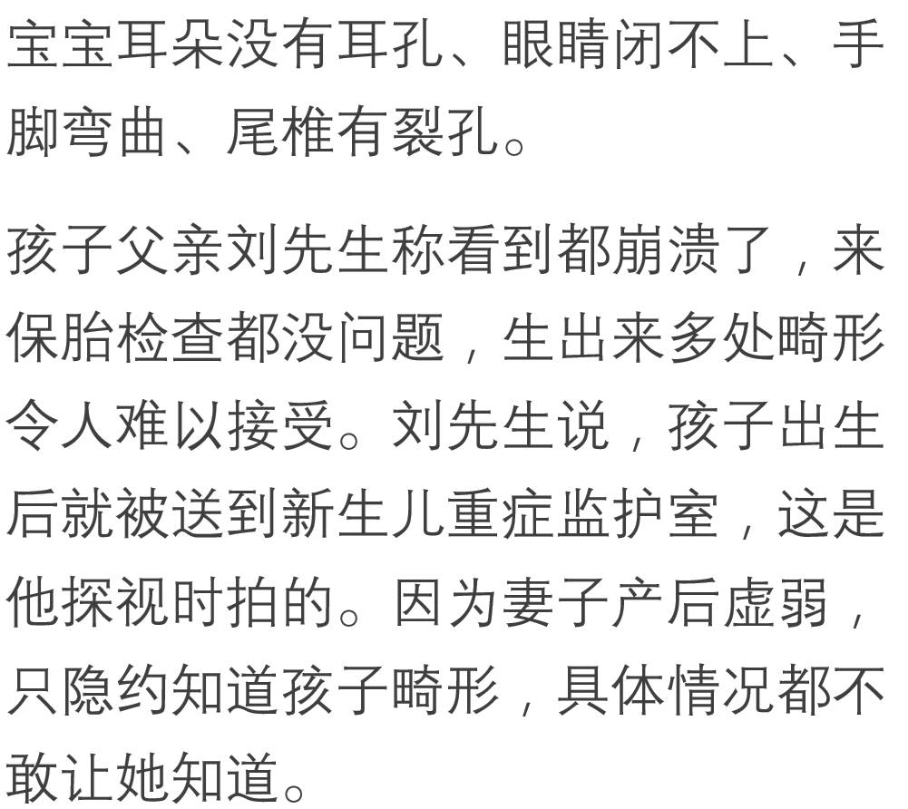 从刘先生提供的检查单可以看到,每次B超都没有提示胎儿有异常。