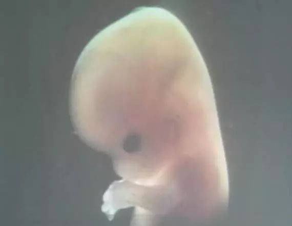 第二个月:身长约75px,体重约4g;鳃消失尾巴变短,逐渐成人形;神经管在孕6周封闭,心脏在孕8周分出二室二房。
