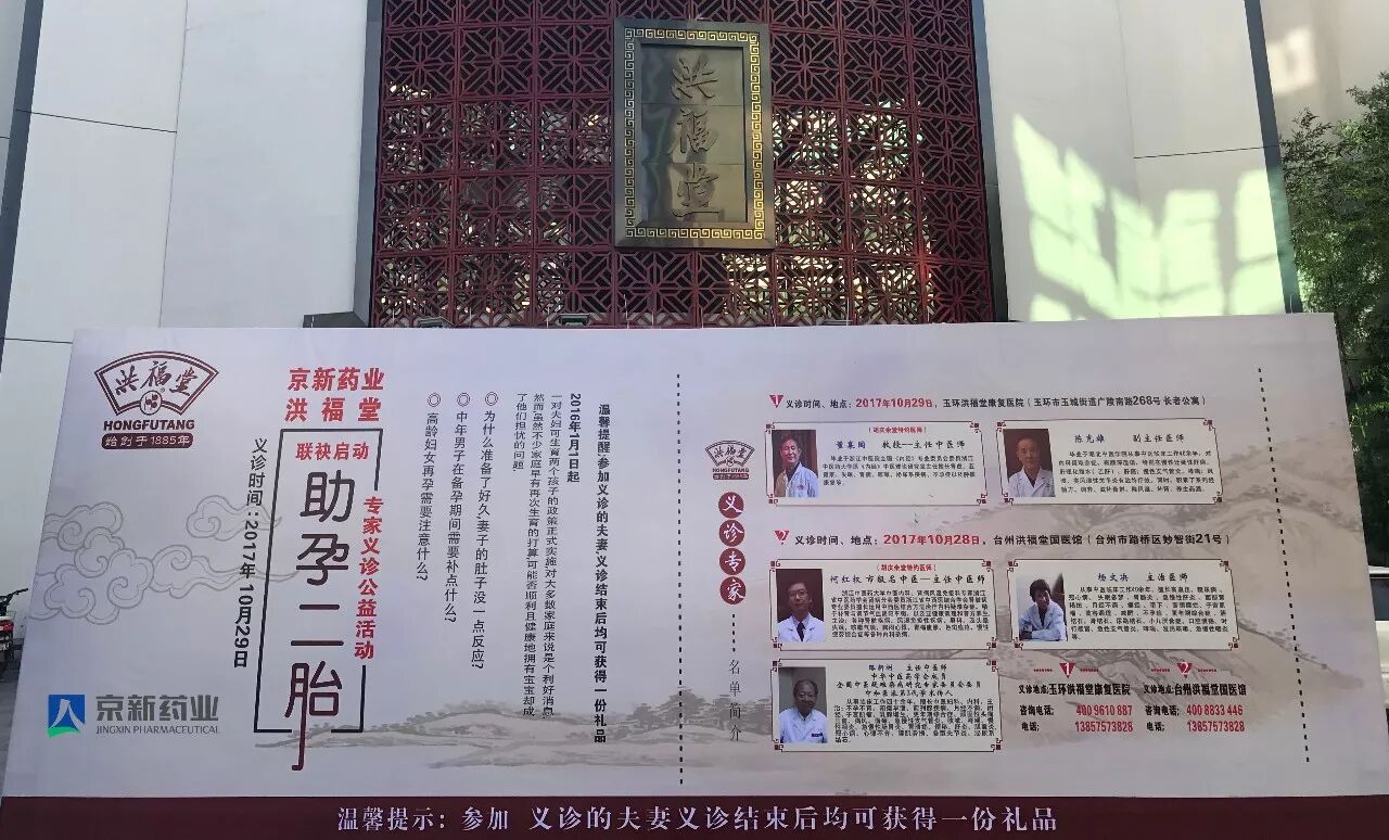 10月28-10月29日,京新药业联袂洪福堂成功举办参竹精“助孕二胎”专家义诊公益活动。