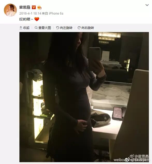 2016年4月1日,霍思燕曾晒“大肚照”写道“哎哟喂”,疑似宣布怀二胎。