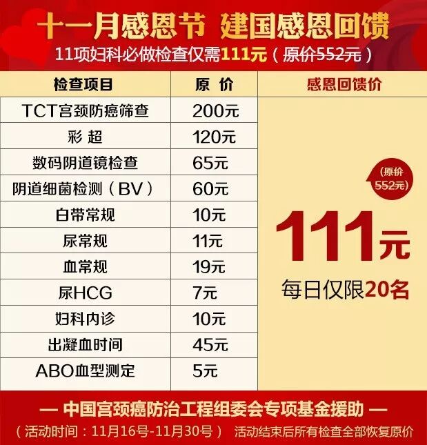 ★11项妇科必做检查仅需111元(原价552元);