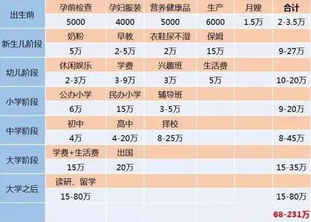 养一个孩子从出生到大学的账单