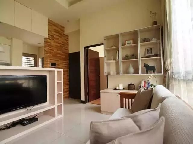 虽然80平不算小,但是客厅的格局有些小尴尬,最后只能单独做个电视背景墙搁电视,顺便隔断了餐厅和厨房。但是电视买回来看得少了,我跟老婆两个人都看手机,孩子也就周末看个动画片,其实可以不必装。