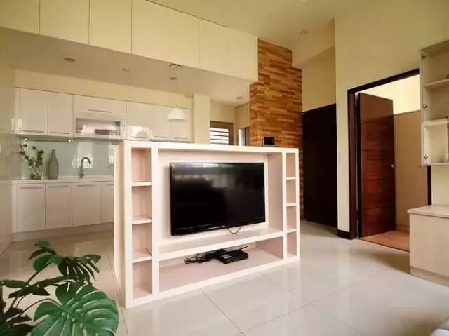 电视柜的背后就是餐厅和厨房了,因为空间的问题被迫做了开放式的厨房,油烟还是很大的。