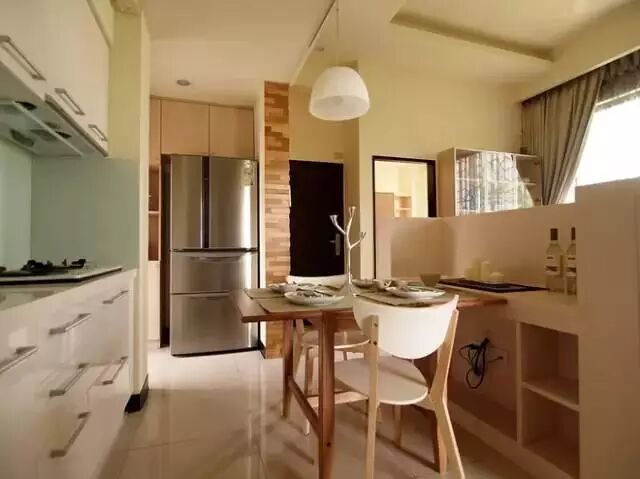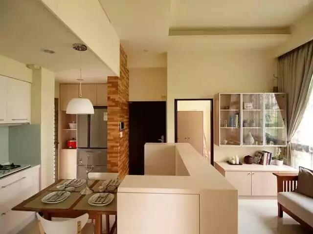 冰箱位置虽然有点远,但是不怎么占空间挺好的,算是半内嵌式。