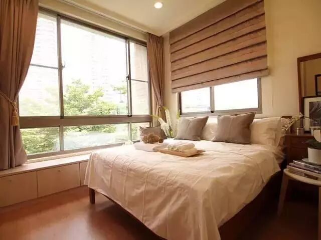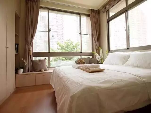 被朋友笑称像是度假村的大床房,那也不错啊,采光很好,房间也够大,在床尾做了个衣柜,这种简约风不容易过时,简单搭配就很好看了。