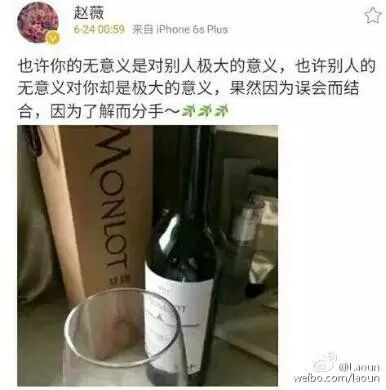 最近,赵薇某日凌晨发博:“果然因为误会而结合,因为了解而分手。”粉丝纷纷担心和揣测。