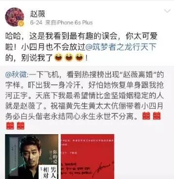 直到赵薇正式发了这样的微博澄清,剧情才峰回路转,柳暗花明……