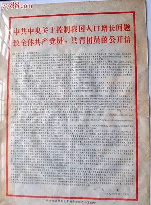 1980年,为推行计划生育政策,中共中央曾面向全国共产党员和共青团员发过一封公开信。这封公开信在当初,可是大大的有名气,被认为是“一胎化”确立的标志。