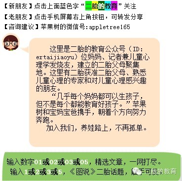 Hi,我是“二胎的教育”公众号的主编苹果树,非常感谢你的关注。有好多人问我,为什么做这件事,做“二胎的教育”?我想了想,大概有几点吧: