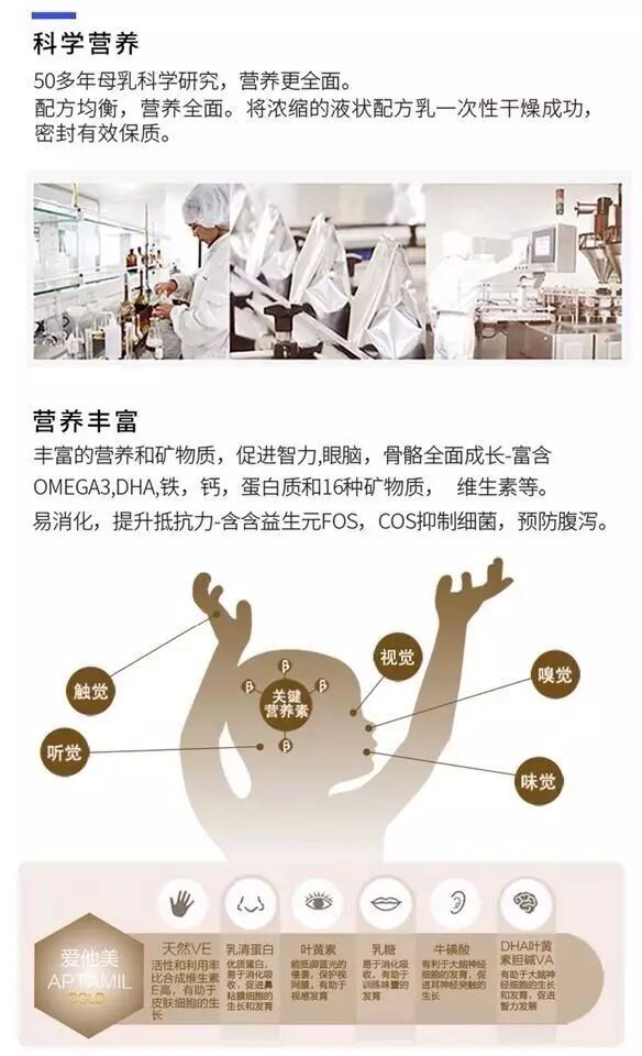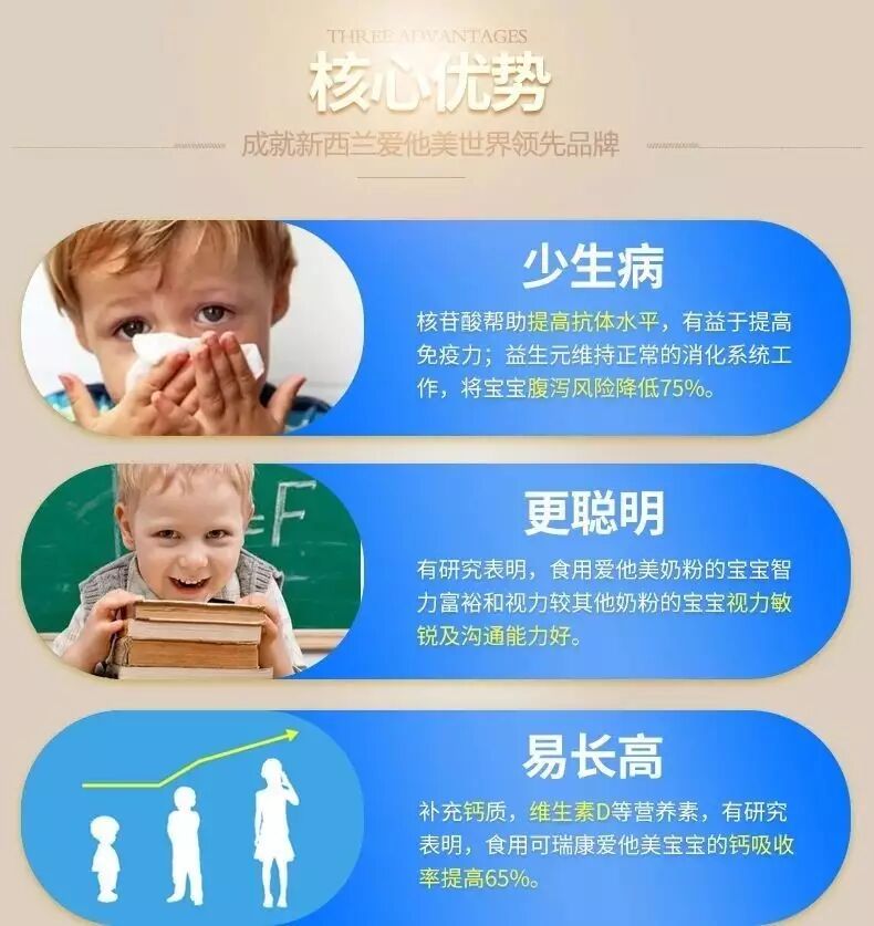 【澳洲金装爱他美奶粉】是国内妈妈选择最普遍最火一款奶粉!优质的奶源、清淡的口感赢得了众多妈妈的青睐,独特的免疫配方全面提升宝宝的抵抗能力。Omega6、Omega3和DHA对宝宝的脑、眼、神经发育非常重要。含有丰富的VC,帮助铁质的吸收。特别添加的菊粉,可以增加肠胃消化能力,预防或改善便秘情况。