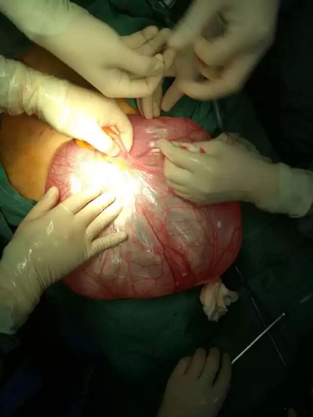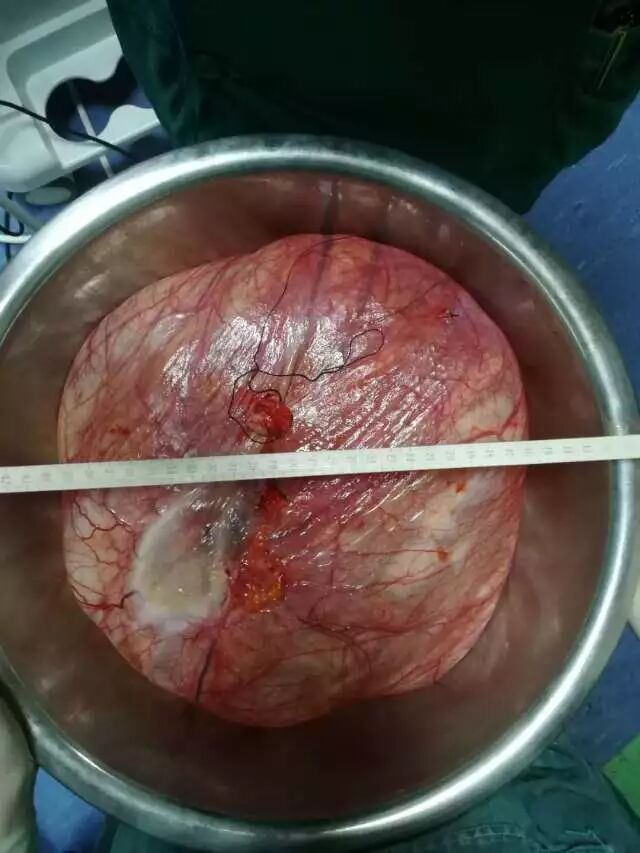 据了解,整台手术充满了许多风险:一是担心大出血,由于卵巢囊肿十分巨大,已严重压迫到腹腔内的各个器官,加之手术较大,操作时稍有不慎,极易引发大出血,从而危及病人生命;二是取出巨大卵巢囊肿后,腹腔出现突发性血压下降,可能引起病人休克,也会危及生命。