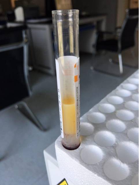 应检验科医生的要求,小李又去抽了一次血,然而,结果是一样的。谢医师说,从小李身上抽出来的血,放一段时间就会析出大量的脂肪,看上去就像冻住的猪油一样,这是非常不正常的,怀疑她可能有高脂血症,于是,又让她做了血脂方面的检查。