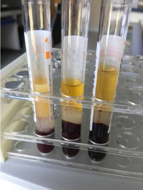 “小李是因为皮肤瘙痒、腹泻到医院来的,而妊娠期皮肤瘙痒多与肝功能异常有关,所以,我建议她先去抽个血查查肝功能。"浙江大学医学院附属第一医院嵊州分院(嵊州市人民医院)的谢莹医师说,“抽完血之后,报告还没出来,检验科的医生电话就打过来说,最好让她再去抽一次。因为,她的血被大量的脂状物裹住了,使得原本鲜红的血液,呈现出混黄色,他们怕自己弄错了标本。"