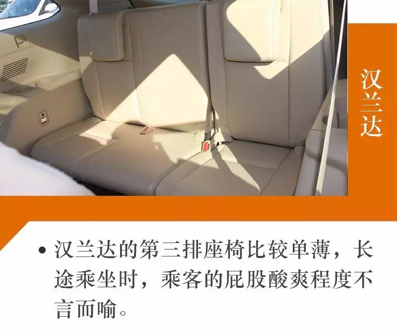 从这几款车第三排座椅的表现来看,汉兰达的第三排仅仅是为了应急之用,长途乘坐肯定是一件煎熬的事情。以实用性和舒适性来衡量的话,汉兰达甚至是20-30万元区间级的七座SUV车型,七座设定基本都是伪命题。