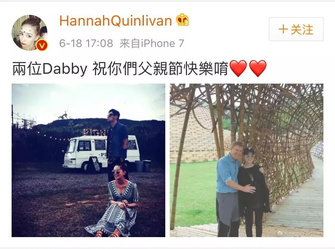 今年6月18父亲节时昆凌也在微博祝福了她身边的两位父亲!