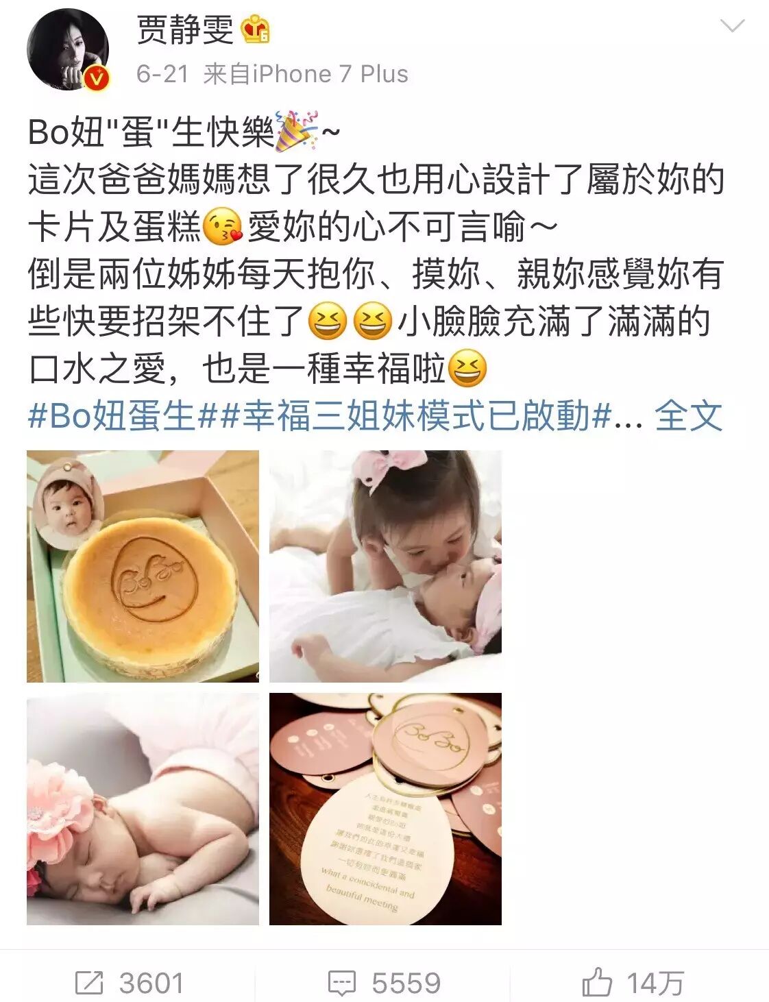 6月21日,贾静雯和修杰楷迎来了三女儿Bobo的出生100天,并在微博上发了三妹bobo和姐姐布布的照片,不得不说,这一家人,颜值都太逆天了!