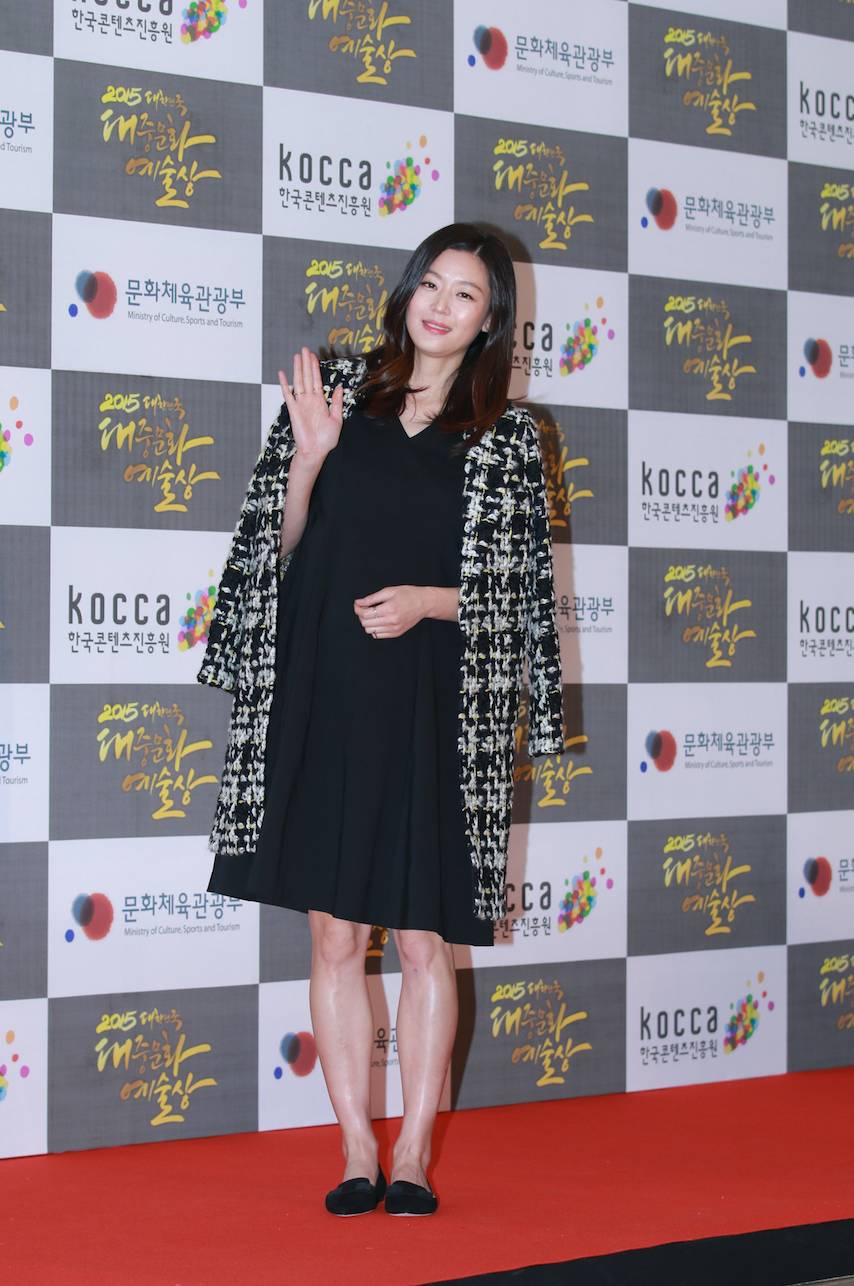 2015年被曝出怀孕后的全智贤很少再出来露面参加活动,留下的孕照也很少,感谢在韩国较为重大的大韩民国大众文化艺术大赏,让我们有机会见到怀孕六个月、身材较不同的全女神~
