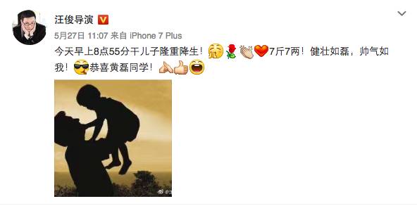 结果没想到,一个小时之后@汪俊导演爆出“黄磊儿子出生”。