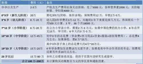 为便于比较直观的感受,我们按照年龄段,仔细算算若生第二个孩子,从小到大主要的一些花费到底要多少。要说明的是,以下都是按照目前的市场行情来计算的,没有考虑将来物价和教育费用上涨因素。若考虑通胀,这个费用实际上会更惊人!