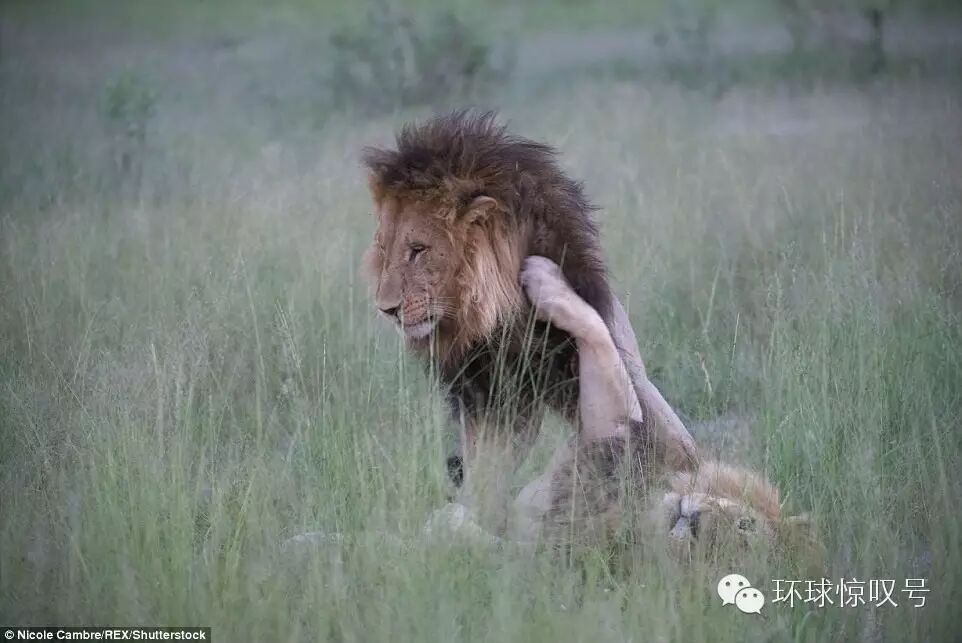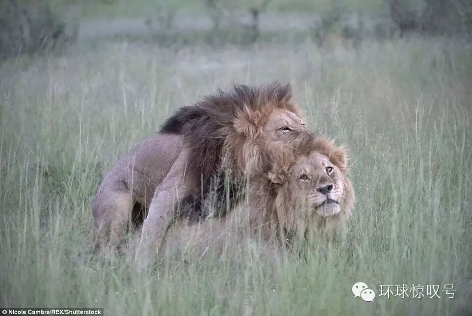 然而日前,在非洲中南部野生动物园内,两头成年雄狮也被拍到发生疑似交配的行为。