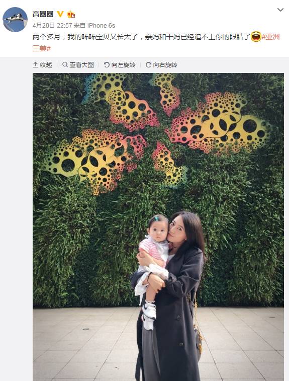 而高圆圆呢,也常常呆在台湾,还认了贾静雯家咘咘为干女儿,言语之间对咘咘也极其宠爱。