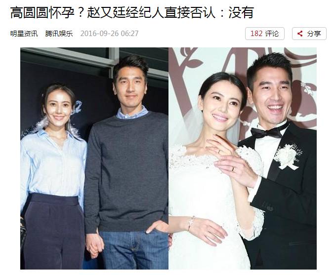 2016年9月,高圆圆怀孕?赵又廷经纪人直接否认:没有