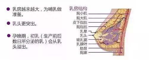 由于雌激素和黄体酮水平上升,乳房会变得越来越大。且由于临产期的临近,荷尔蒙的变化使得怀孕女性的乳房产生更多的乳汁导管,为哺乳做准备。
