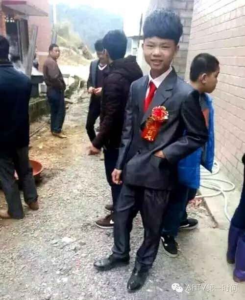 新郎照片。 这对“小夫妻”在当地已经是名人了。新郎小张说:“出门个个都在看着我,不过我也不觉得有什么,慢慢就过去了。” 摆酒第二天,新郎在QQ空间发了一条说说“我还小,不懂事”,配图是两人的结婚照。