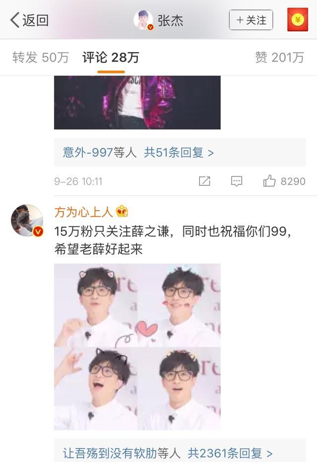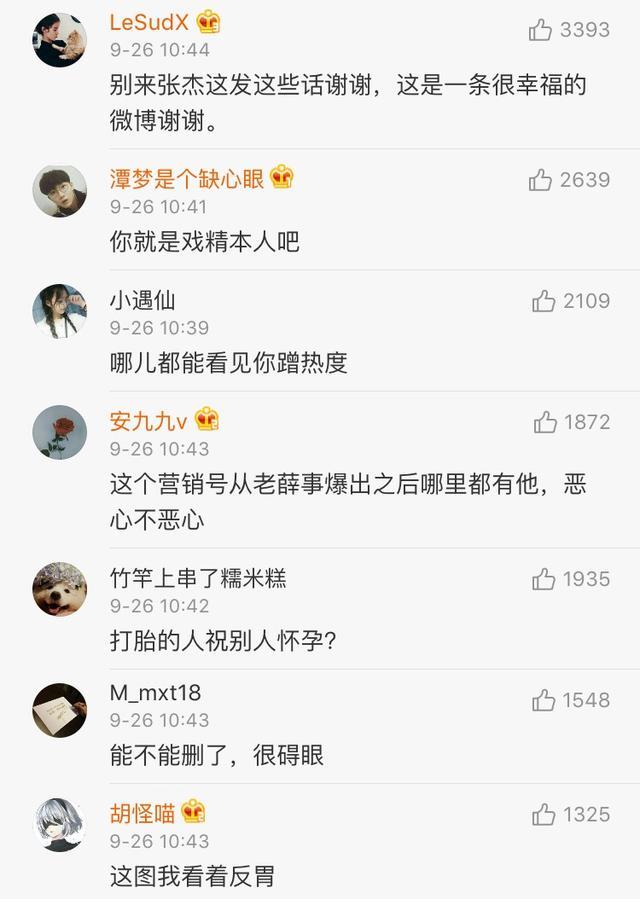 张杰谢娜今天上午公布了怀孕成功的好消息,网络上一片喜气洋洋,很久没有看到如此和谐,全部是“祝福、恭喜”的评论区了,不过没想到一个薛之谦的粉丝乱入,祝福张杰谢娜的同时,又祈祷了薛之谦能从此次“骗情”事件中恢复,还配了薛之谦的四张大头照,一时间引起网友激愤。