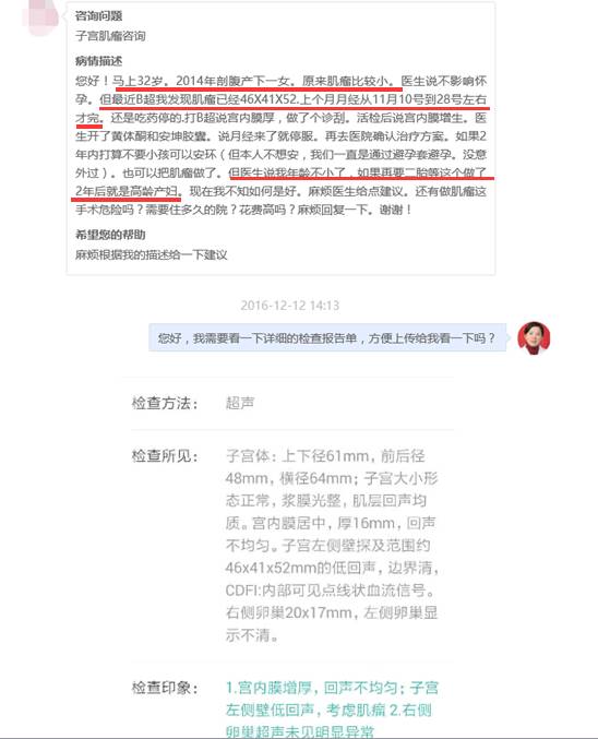 主诉2014年剖腹产一胎时发现子宫肌瘤,较小,未作处理。现备孕二胎,B超显示肌瘤增大至4.6*4.1*5.2cm大小。