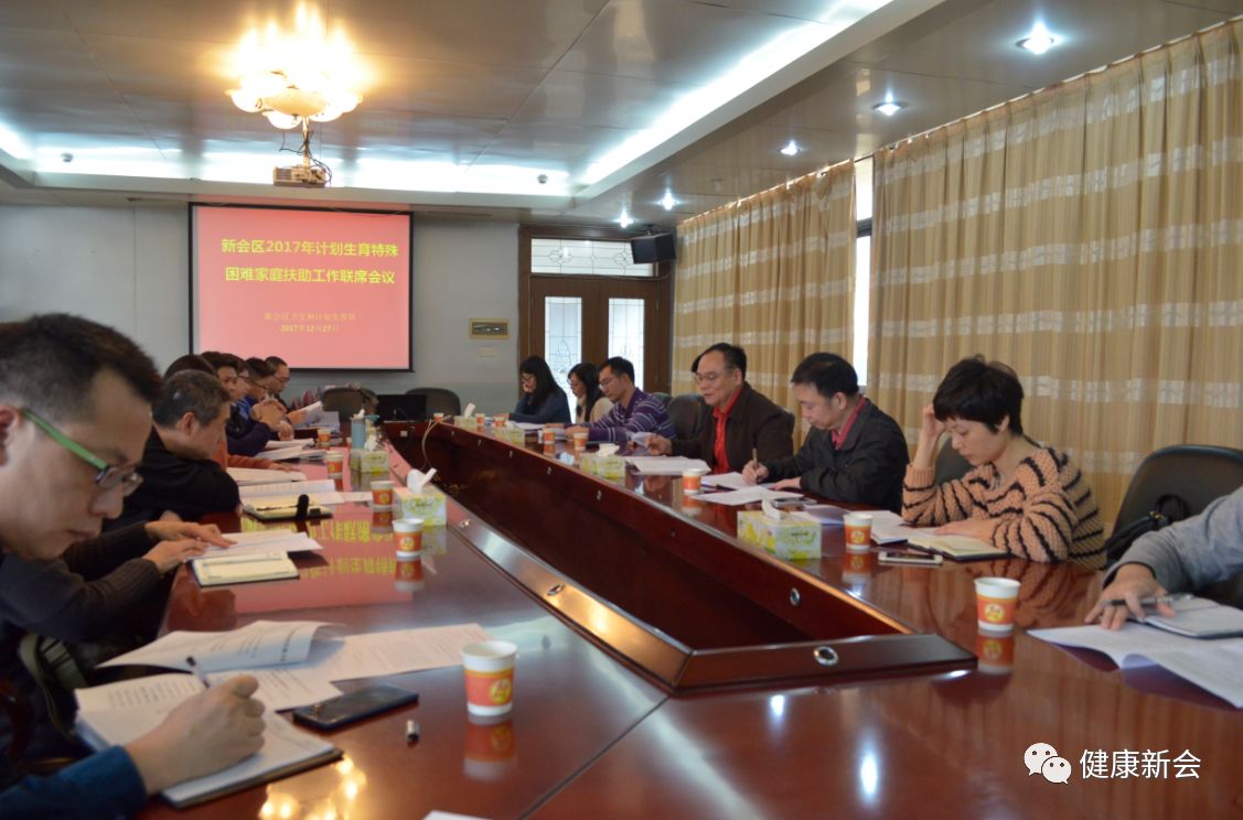 会议上区卫生计生局、区委政法委、财政局、人力资源和社会保障局、民政局、残联、会城街道卫生计生局及区人民医院、中医院、妇幼保健院等多部门共同研讨新会区扶助计划生育特殊困难家庭实施方案的具体实施细则,建立科学、合理、长效的扶助机制,帮助特殊困难家庭解决实际问题,确保改善和提高特殊困难家庭对象的生活质量。