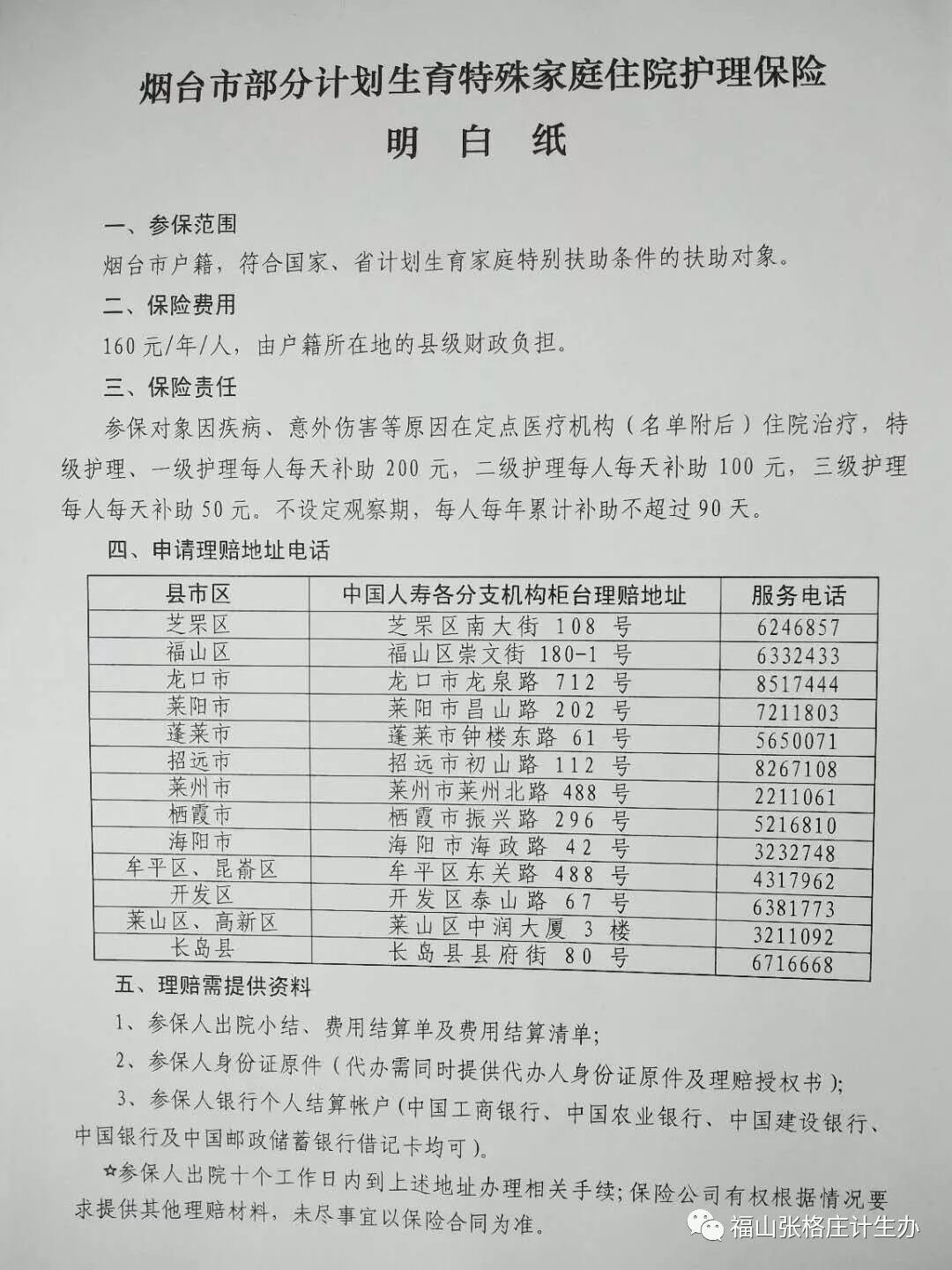 近来,烟台市发放了一项关于部分计划生育特殊家庭的福利,那就是为符合条件的计划生育特殊家庭免费办理住院护理保险,这么暖心的福利,小编觉得你有必要好好了解一下,一起来看~