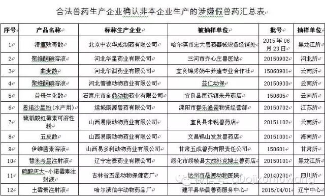 非法兽药生产企业名单