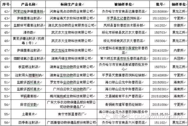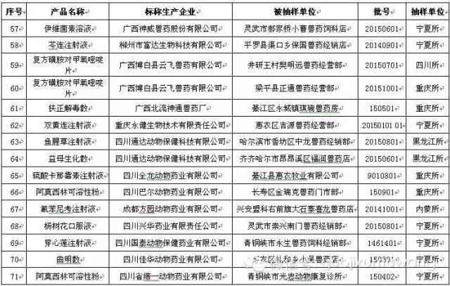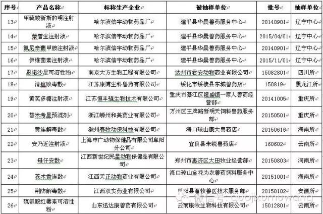 近日,兽药监察所等17个省级兽药检验机构报送了2016年3月份兽药监督抽检中经抽样确认的87批假兽药相关信息。其中,非法兽药生产企业3家(附件1),涉及假兽药3批(附件2);合法兽药生产企业确认非本企业生产的涉嫌假兽药84批(附件3)。