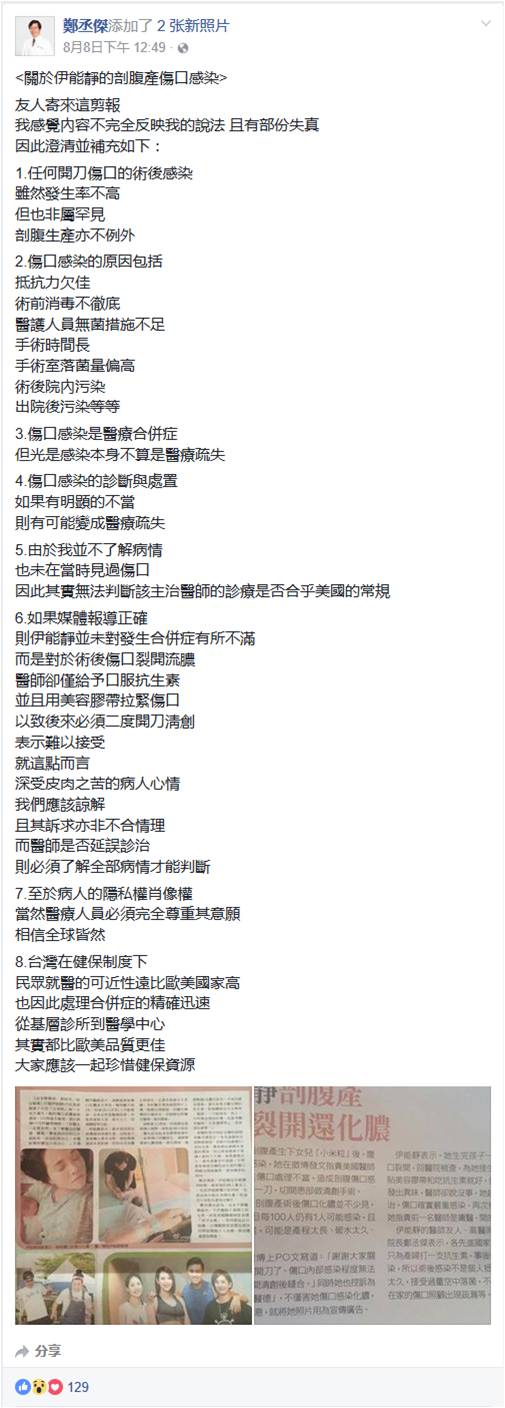 看到这里,小编觉得关于那位台湾郑丞杰医生的言论报道多少还是值得商榷的。查不到最初的采访出处,于是我看了看他的FB——